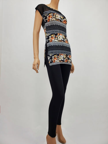 Dolman Sleeve Front Print with Back Mesh Plus Size (Black)