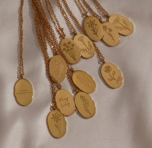 Engraved Birth Month Flower and Name in Gold