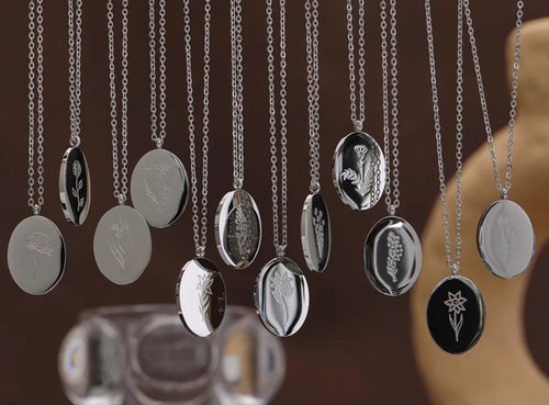 Engraved Birth Month Flower and Name in Silver