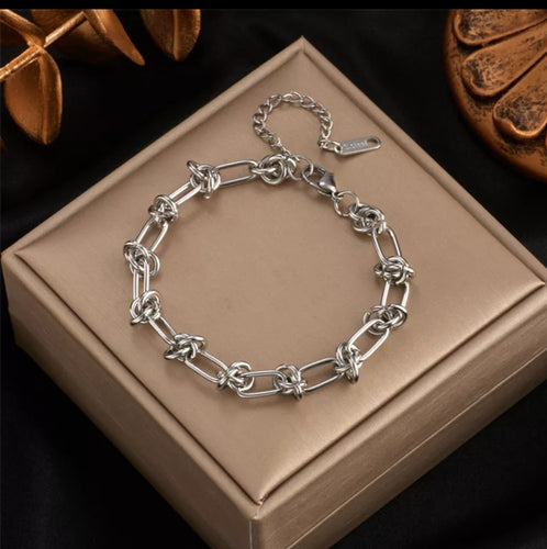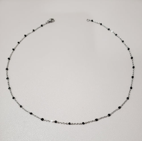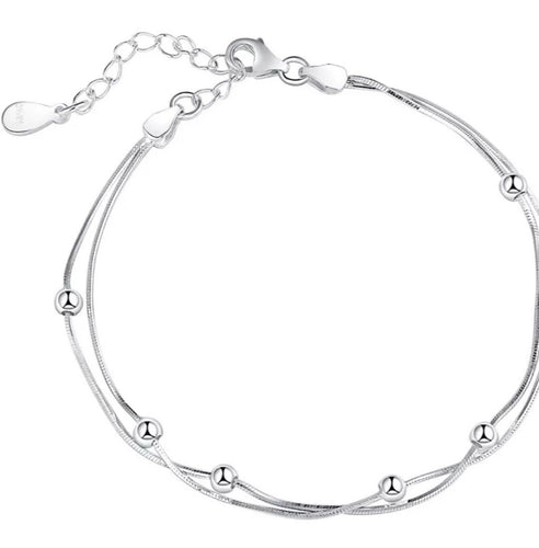 3 Layer Silver Necklace with Rectangle/Round Pendant and Bead Necklace