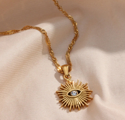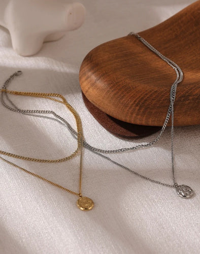 Double Layered Hammered Round Pendant Necklace Gold/Silver